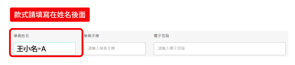 課程有三款不同造型,三擇一製作,請於報名時於學員姓名處填寫,範例:王小名A款
