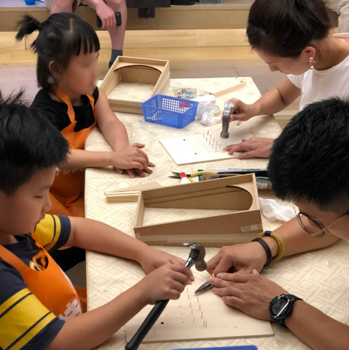由手創老師來到指導小朋友們操作工具,從上課的過程中學習到工具的使用並能獨立操作,而年紀較小的小朋友也能與把拔馬麻一同製作,當一個得力的小助手,完成一個專屬於自己的DIY作品。