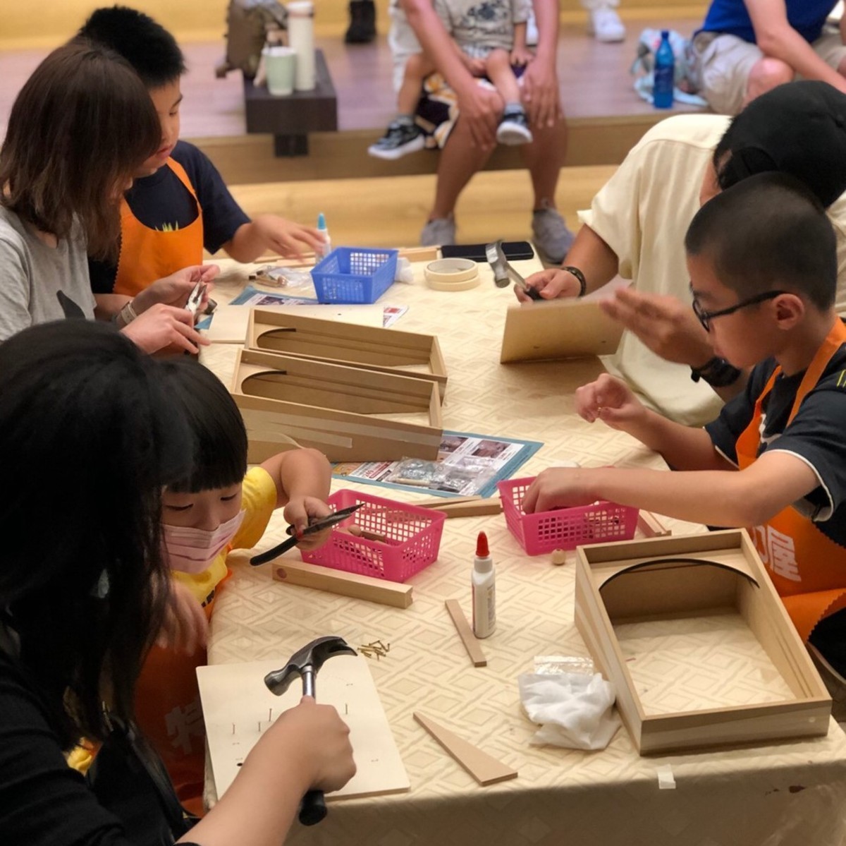 這次舉辦了四場DIY活動,作品分別有臘腸狗置物架、小飛機筆筒座、四格收納櫃及木趣彈珠台。