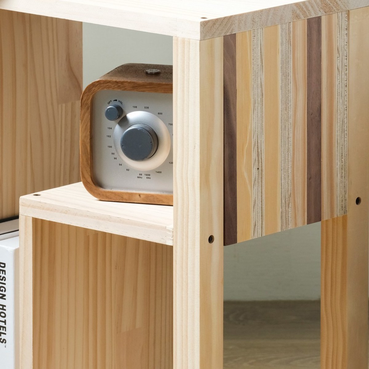 天然松木材質,優雅木紋天然呈現,結合多種木材拼接,具獨特又實用,多角度置物空間,使用靈活運用。